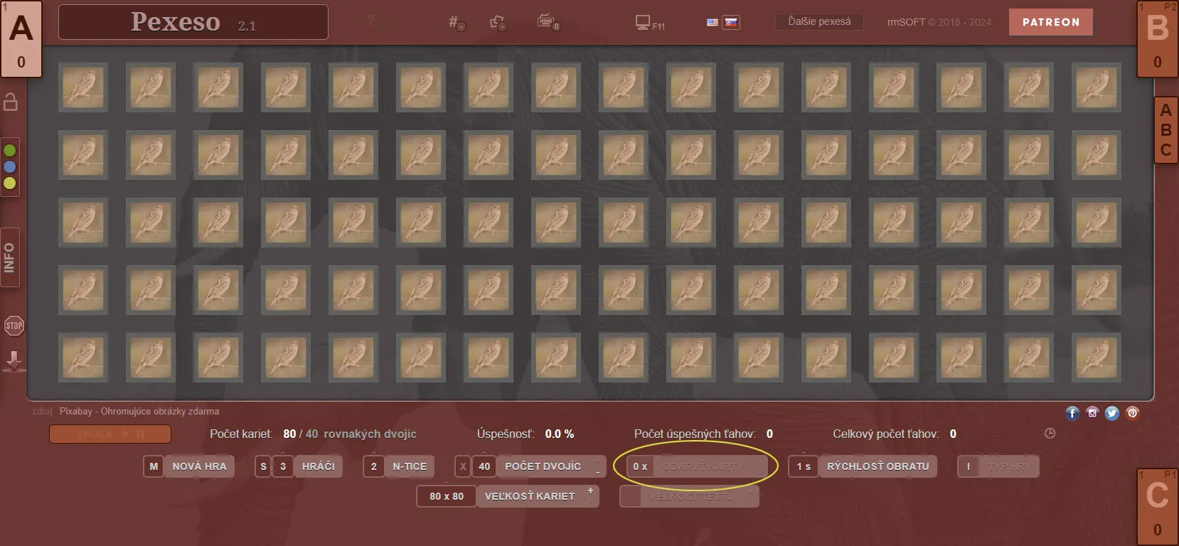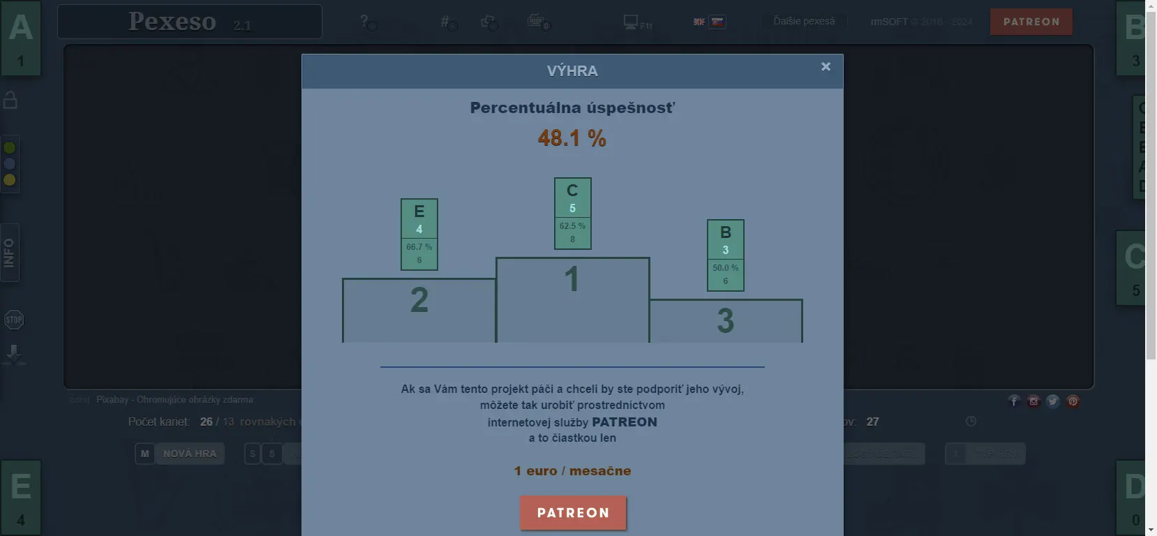 A... pexeso pre viacerých hráčov bolo na svete 😀 (klávesová skratka < R >) [obr. 11] ... Ešte tak vytvoriť stupne víťazov... 🙃 [obr. 12]