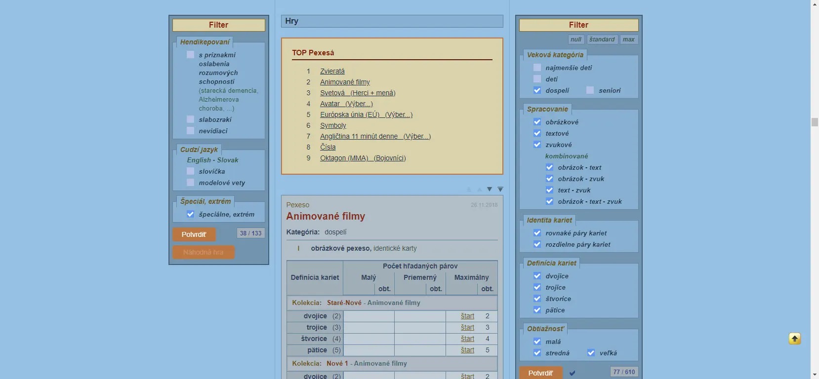 Pexeso sa svojou ponukou stále viac a viac zdokonaľovalo.