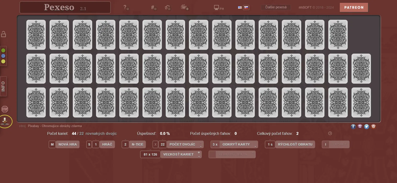 Digitálne pexeso portálu rmSOFT.sk naštartovalo svoju púť v roku 2018, kedy bol mojej mame diagnostikovaný nábeh na Alzheimerovu chorobu. Snažil som sa jej nejako pomôcť a rozhodol som sa naprogramovať jednoduché Pexeso, ktoré by dokázala hrať s ľahkosťou a záujmom.