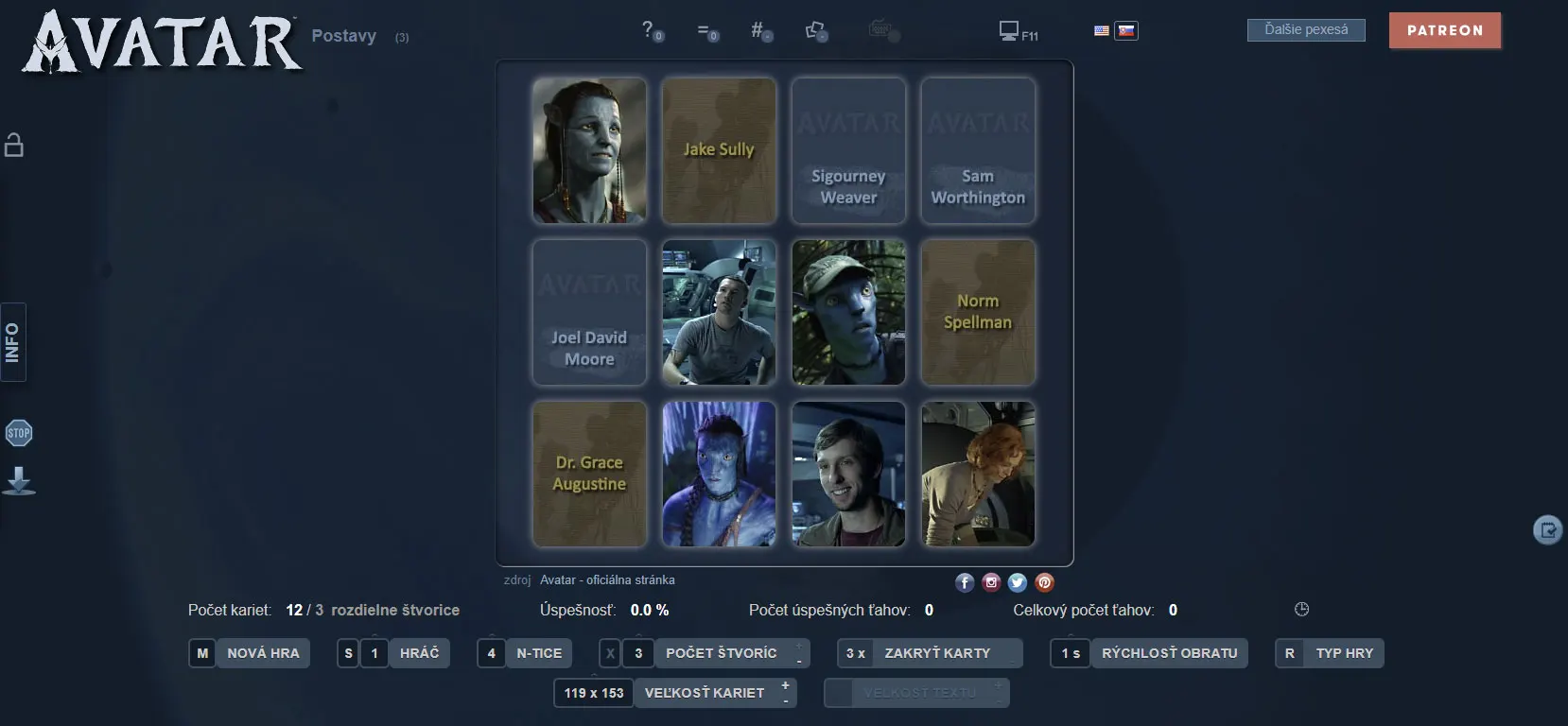 Ale výsledok bol očarujúci... Dokonca som mohol vytvoriť prvé pexeso so 4 rozdielnymi kartami: meno herca, meno postavy, obrázok postavy človeka a obrázok postavy avatara (Na'vi). [obr. 42]