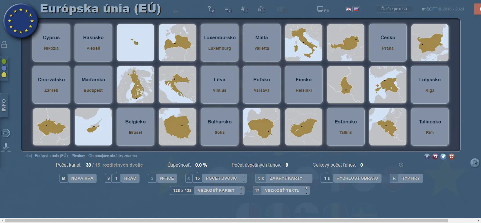 A tak vznikla kolekcia hier pexesa EÚ { https://eu.memoryaz.com/sk }, v ktorej sú obsiahnuté názvy, vlajky, mapy a hymny jednotlivých štátov... [obr. 47] [obr. 48] [obr. 49]